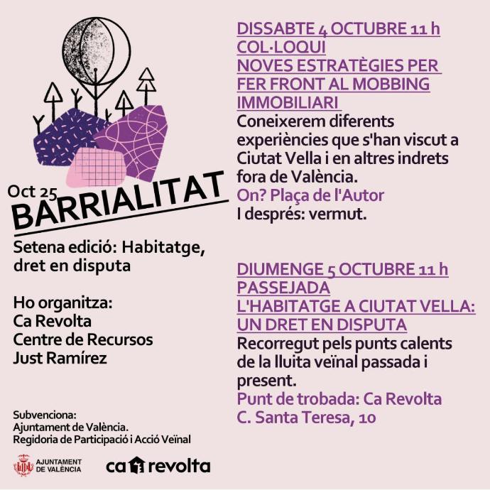 Dissabte 4 a les 11 h, a la plaça de l'Autor, farem un col·loqui per compartir experiències i construir estratègies per fer front a les noves formes de mobbing immobiliari.